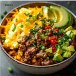 This full list makes life easy. Frozen works just fine here. Thawing the hash browns a bit helps them crisp up faster. Whole milk keeps the scrambled eggs tender. If you like, swap turkey sausage or a plant-based option and the bowls still feel like home.